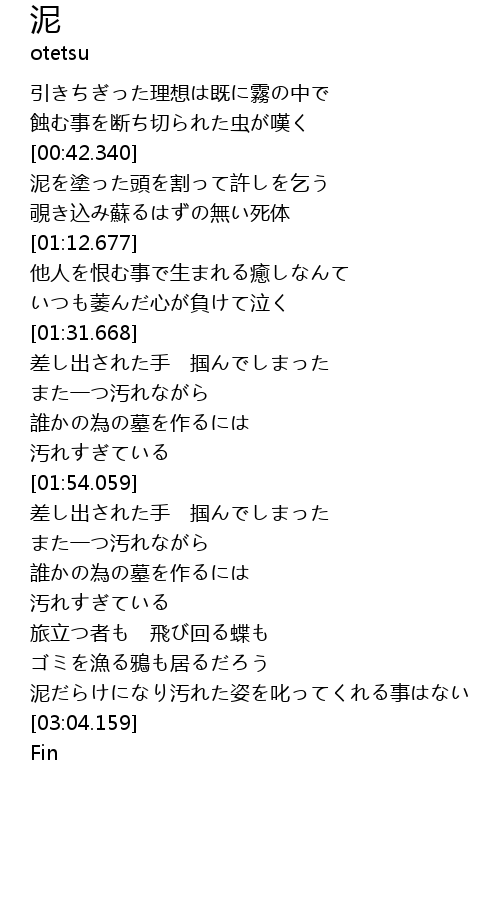 | [01:47.449] | 汚れすぎている |