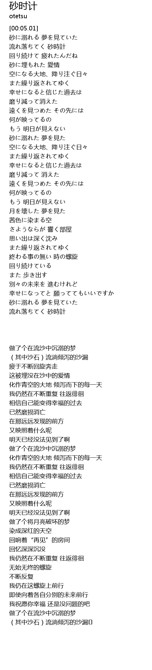 | [00:17.01] | 砂に溺れる 夢を見ていた |