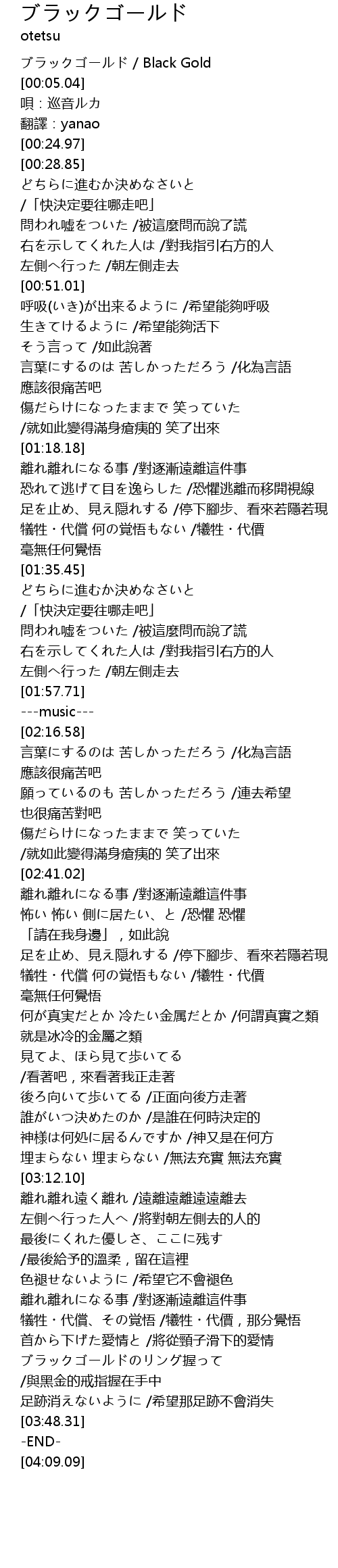 | [00:02.25] | ブラックゴールド / Black Gold |