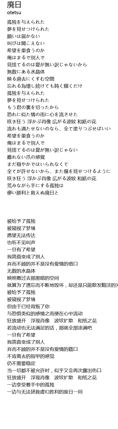 | [02:46.86] | 儚い勝利と救えぬ廃日と |