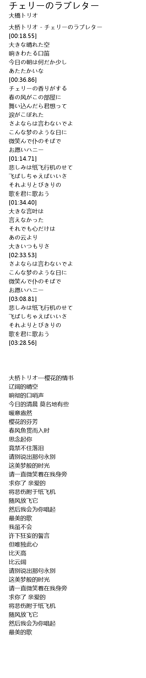 大桥トリオ - チェリーのラブレター |