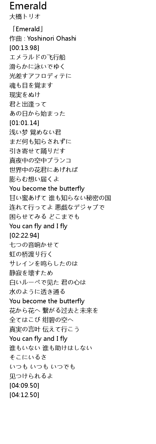 | [00:15.98] | エメラルドの飞行船 |