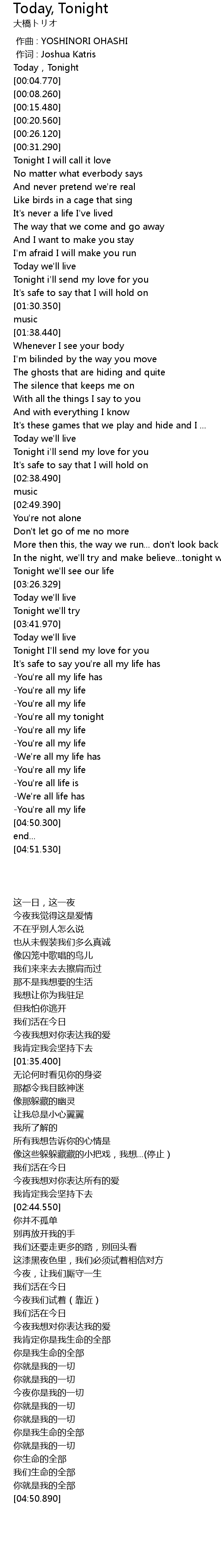 | [03:08.950] | In the night, we'll try and make believe...tonight we have |
