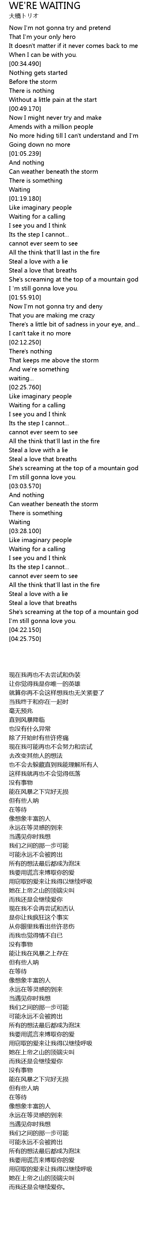 | [03:31.300] | Waiting for a calling |