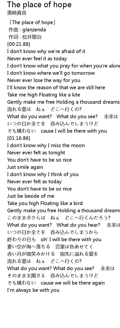 | [02:38.20] | What do you want? What do you see? 未来は |
