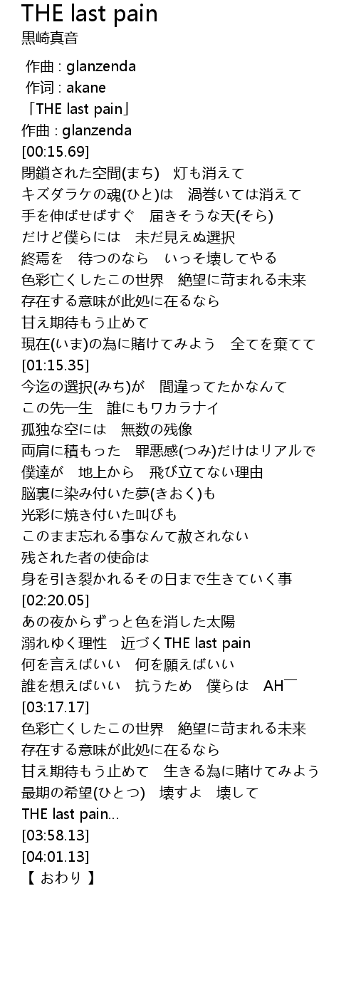 | [02:49.63] | 溺れゆく理性 近づくTHE last pain |