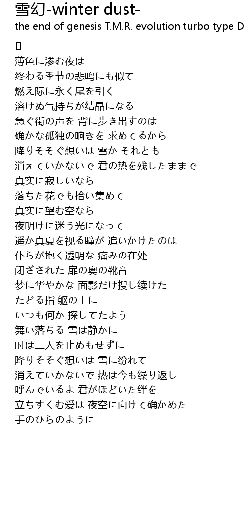 | Artist | the end of genesis T.M.R. evolution turbo type D |