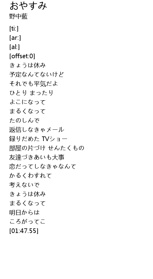 おやすみ  Lyrics