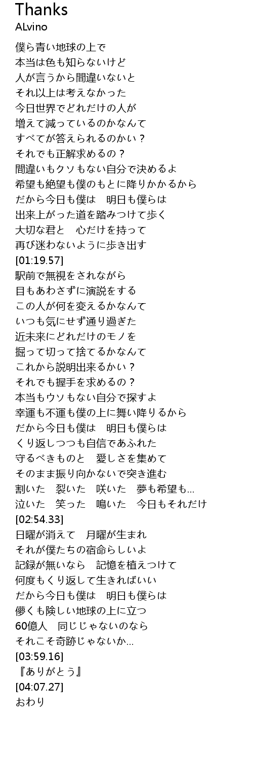 | [03:44.76] | 60億人 同じじゃないのなら |
