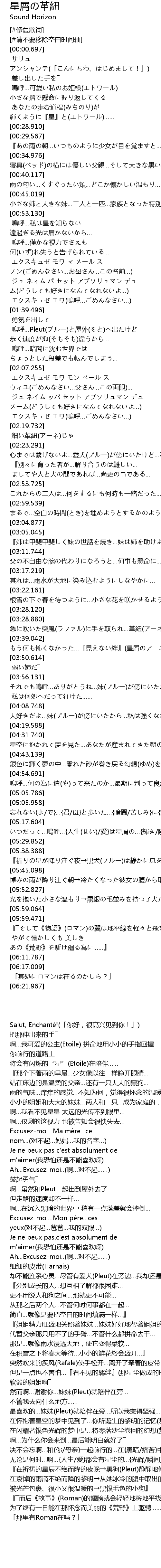 | [05:38.388] | 『祈りの星が降り注ぐ夜→黒犬(プルー)は静かに息を引き取った… |
