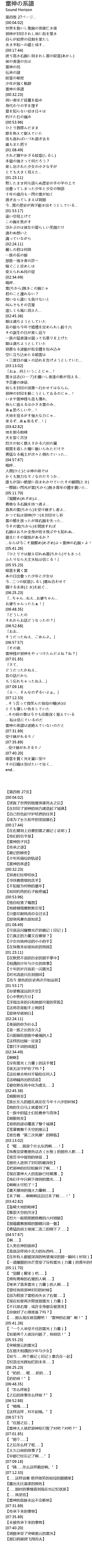 | [00:25.34] | 伝承の謎 |