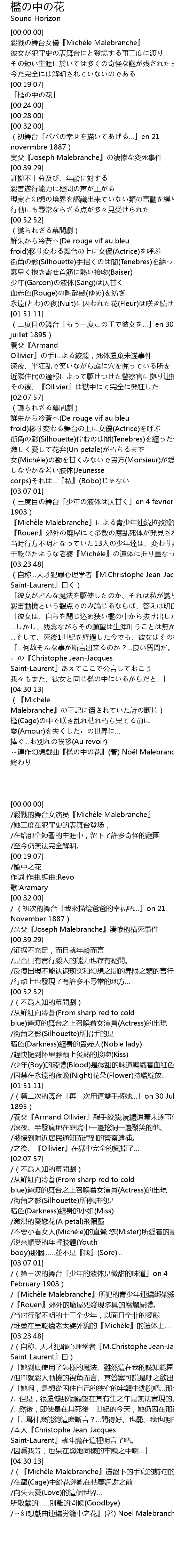 | [04:47.58] | ~連作幻想戯曲『檻の中の花』(著) Noёl Malebranche |