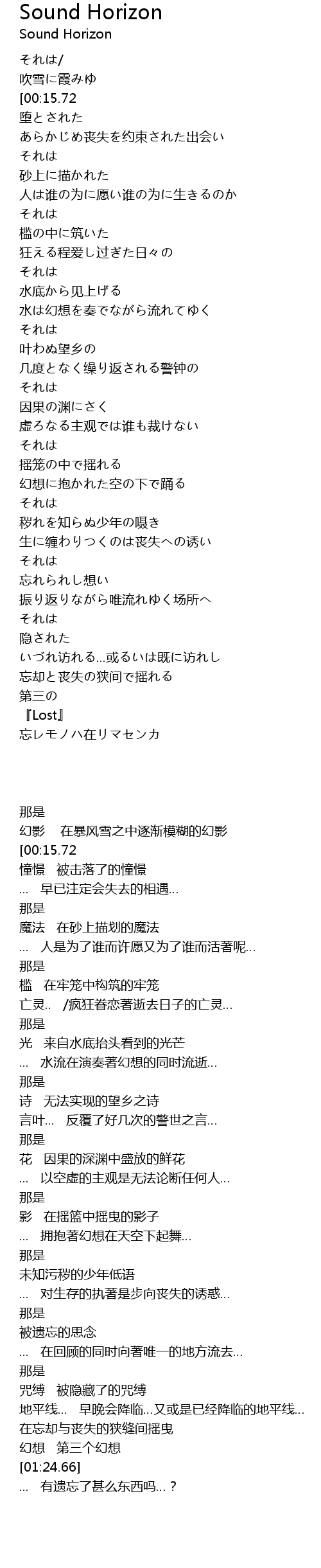 | [00:58.25] | 生に缠わりつくのは丧失への诱い |