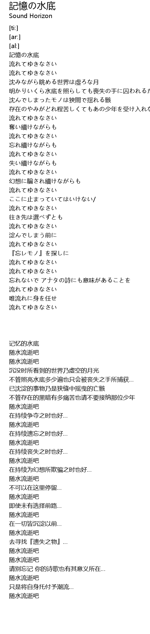 | [01:40.76] | 流れてゆきなさい |