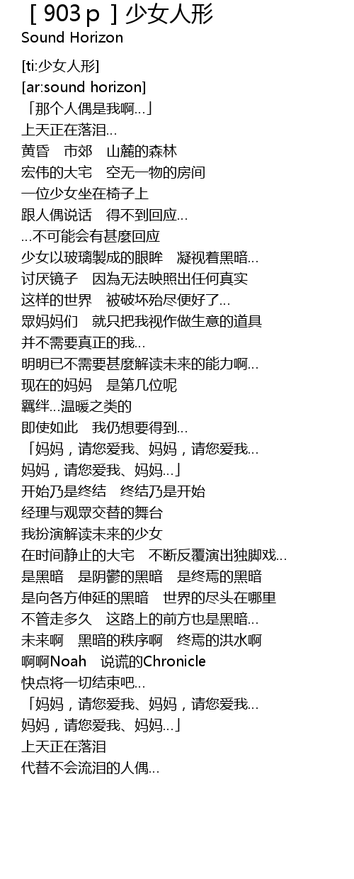 | [00:17.930] | 少女以玻璃製成的眼眸 凝视着黑暗… |