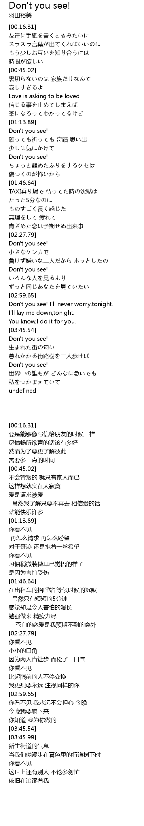 | [03:31.19] | Don't you see! I'll never worry,tonight. |