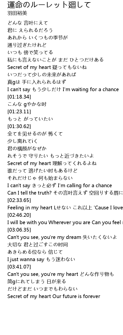 | [00:57.03] | Secret of my heart 疑ってもないね |