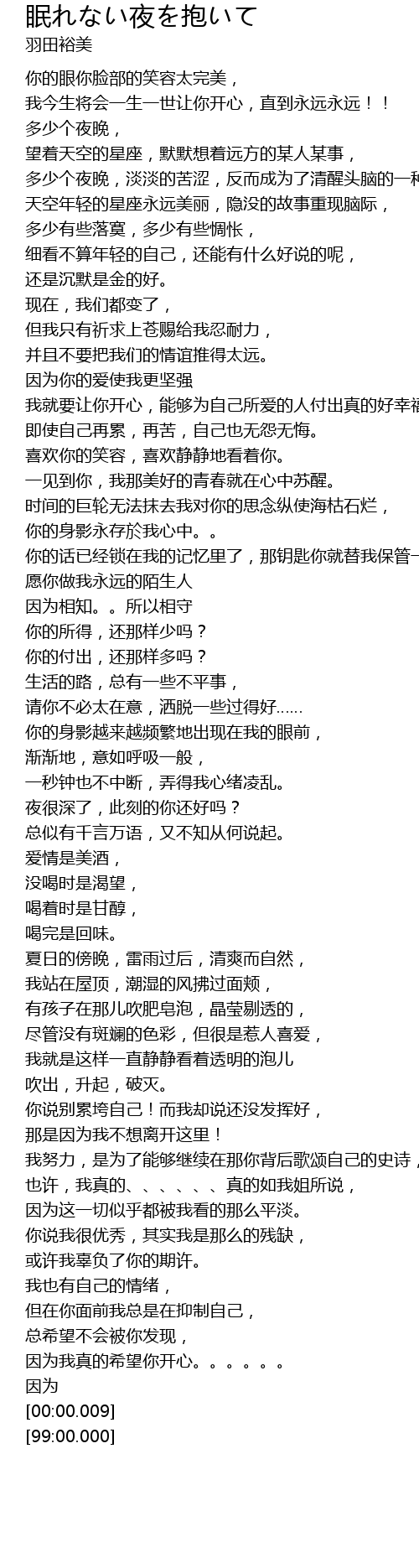 | [02:56.31] | 夜很深了,此刻的你还好吗? |