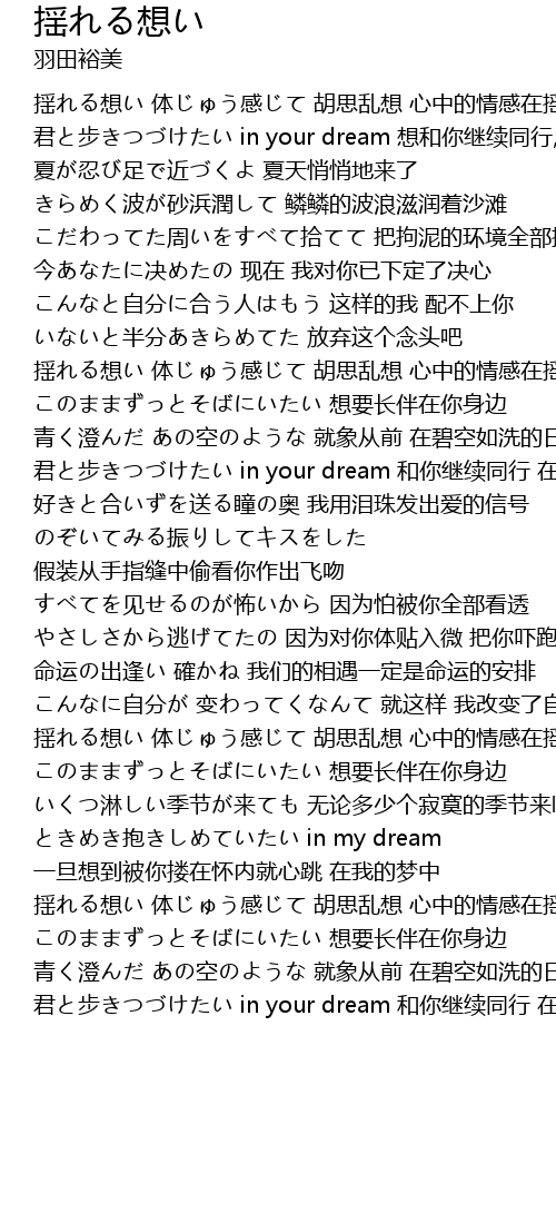 | ときめき抱きしめていたい in my dream 一旦想到被你搂在怀内就心跳 在我的梦中 | |