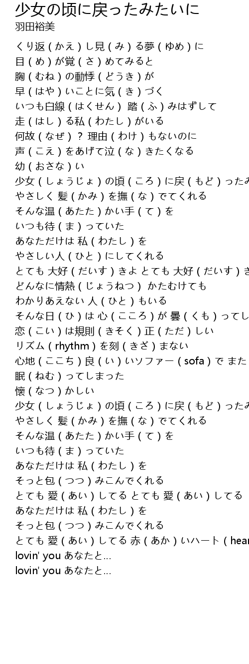 | 幼(おさな)い 少女(しょうじょ)の頃(ころ)に戻(もど)ったみたいに | |