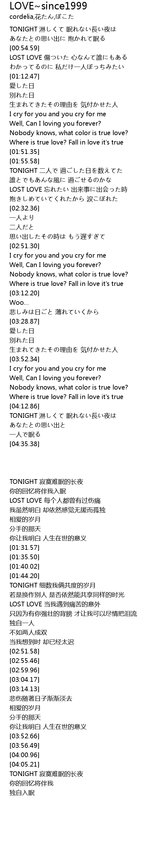 | [00:54.92] | LOST LOVE 傷ついた 心なんて誰にもある |