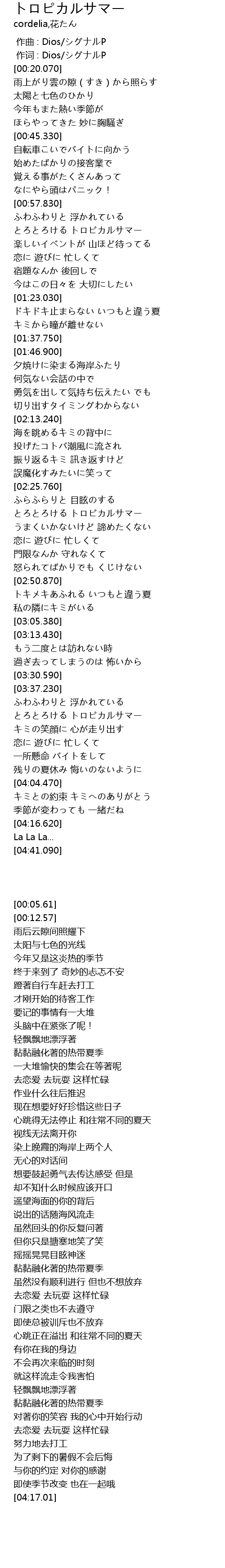 作词 : Dios/シグナルP |
