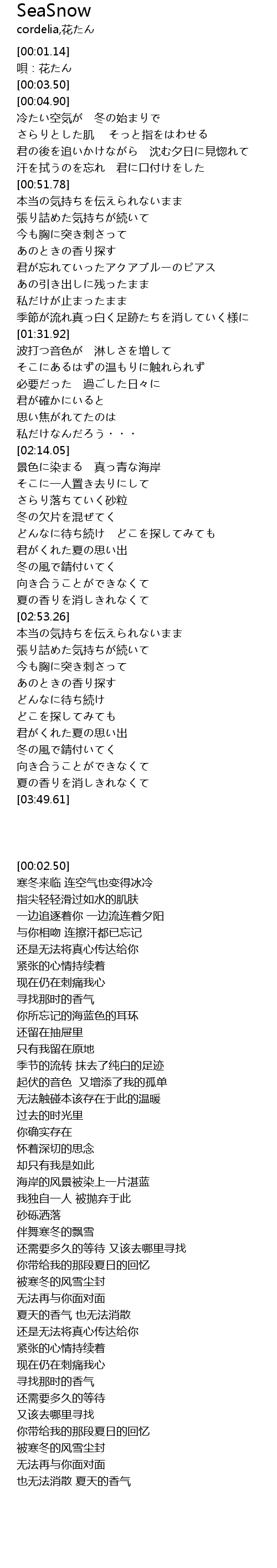 | [00:02.50] | 唄:花たん |