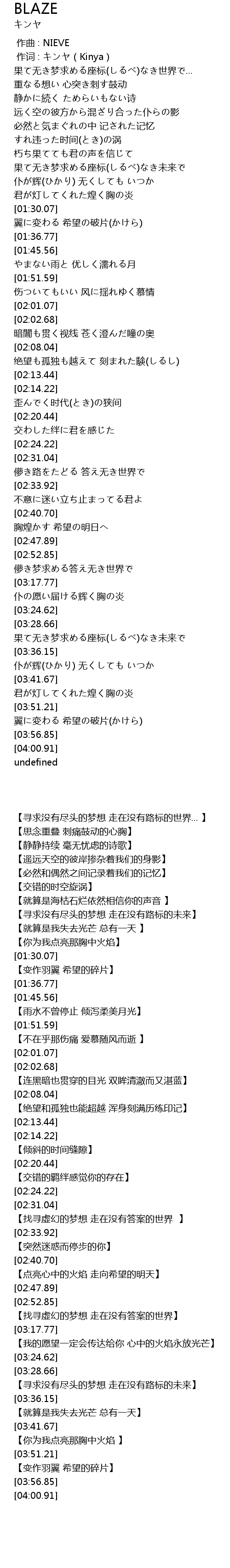 | [03:20.90] | 仆の愿い届ける辉く胸の炎 |