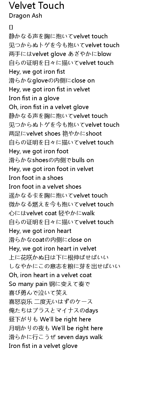| 见つからぬトゲを今も抱いてvelvet touch | |