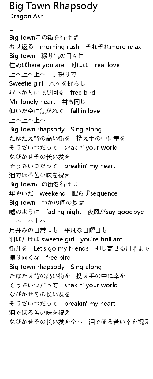 | なびかせその长い发を空へ 泪でほろ苦い幸を祝え |