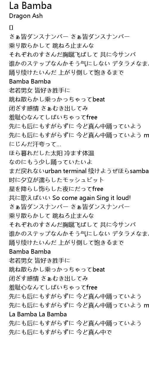 | それぞれのすさんだ胸蹴飞ばして 共に今サンバ | |
