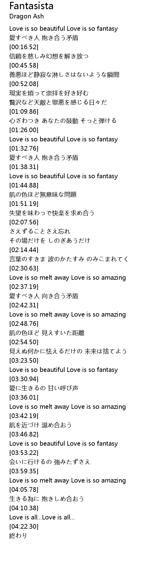 | [03:49.07] | Love is so beautiful Love is so fantasy |