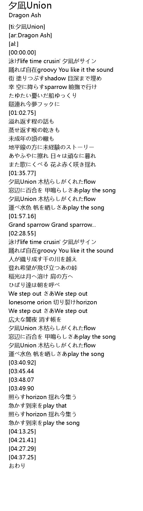 | [01:36.26] | 夕凪Union 木枯らしがくれたflow |