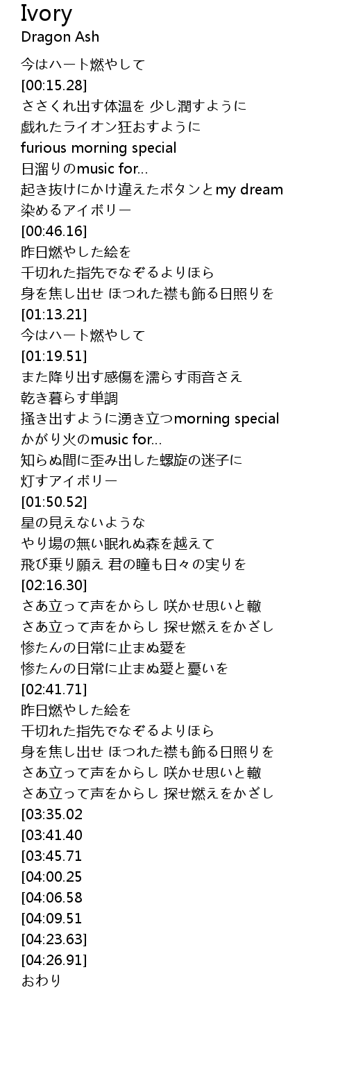 | [04:19.25][04:06.58] | 染まるアイボリー |
