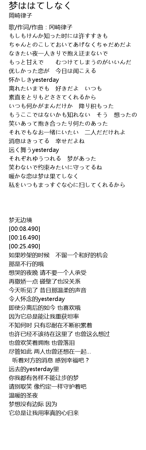 | Song | 梦ははてしなく |