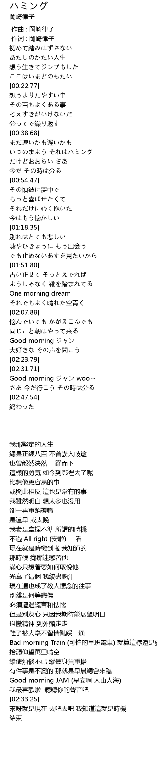 | [00:00.00] | 作曲 : 岡崎律子 |