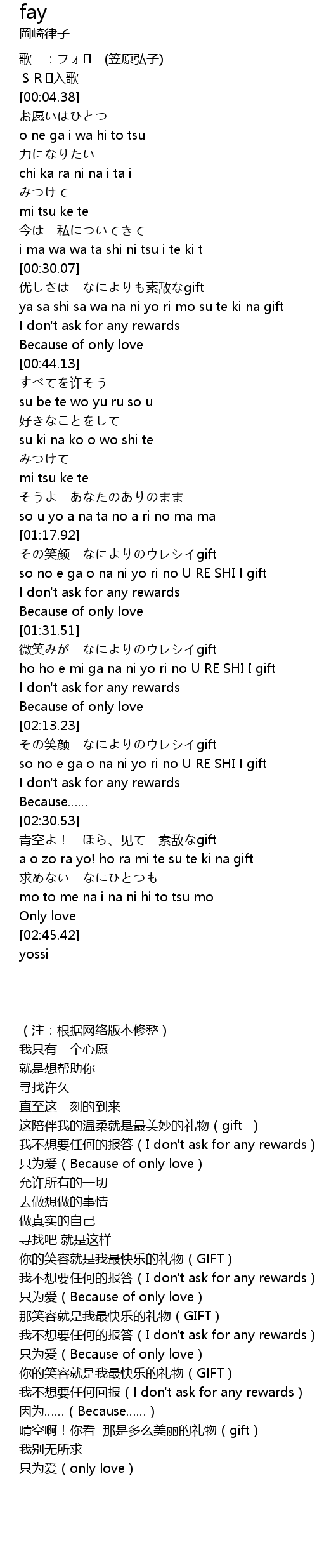 | [02:19.03] | xiào yán gift |