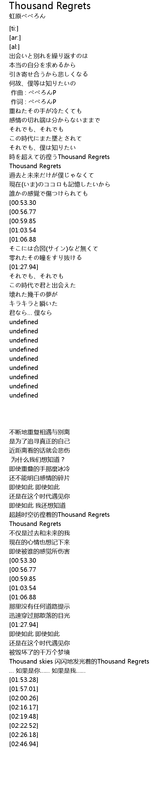 | [00:29.61] | shi chao pang huang Thousand Regrets |