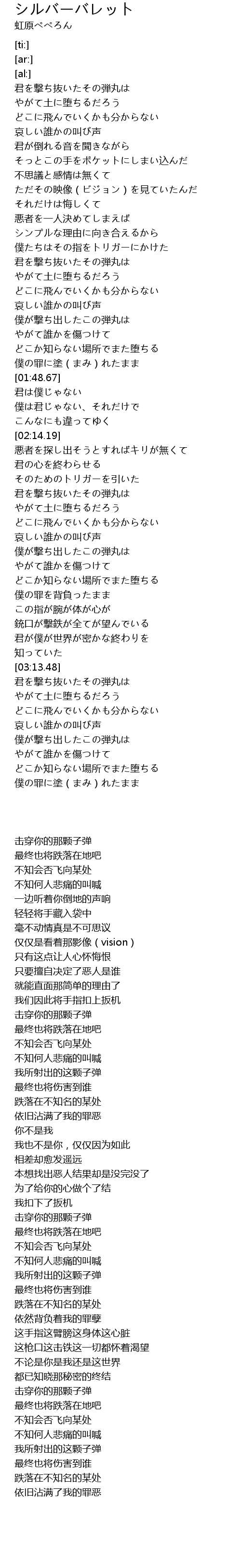 | [02:30.03] | 君を撃ち抜いたその弾丸は |