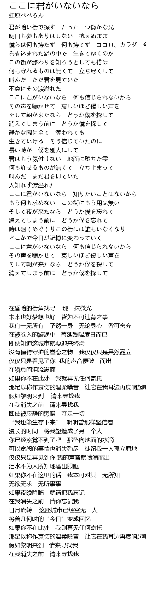 | [02:19.158] | ここに君がいないなら 知りたいことはないから |
