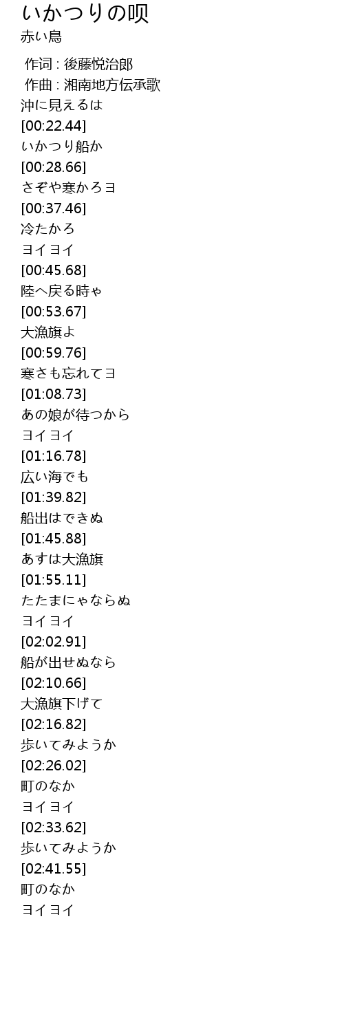 | [00:01.000] | 作曲 : 湘南地方伝承歌 |