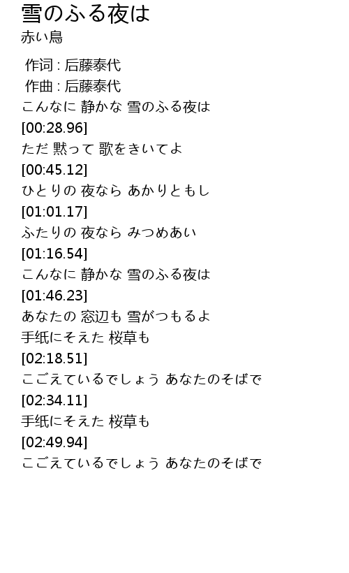 | [01:34.12] | こんなに 静かな 雪のふる夜は |