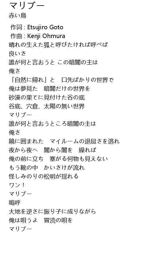| [02:07.07] | マリブー |