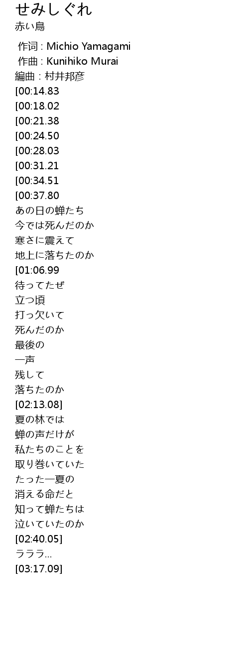 | [02:33.63] | 知って蝉たちは |