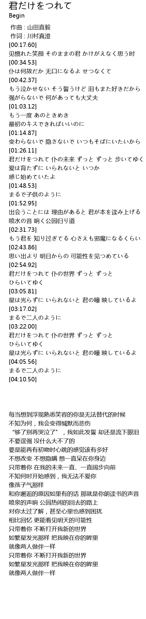 | [01:37.62] | 爱は育たずに いられないと いつか 感じ始めていたよ |