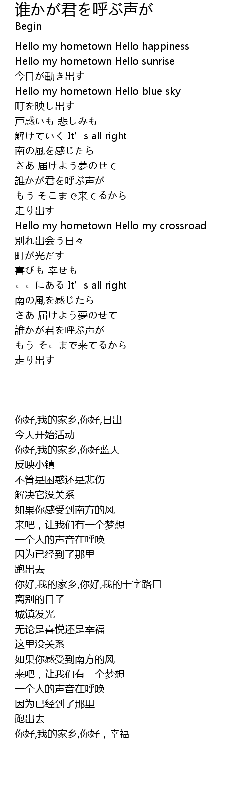 | [00:24.000] | Hello my hometown Hello sunrise |