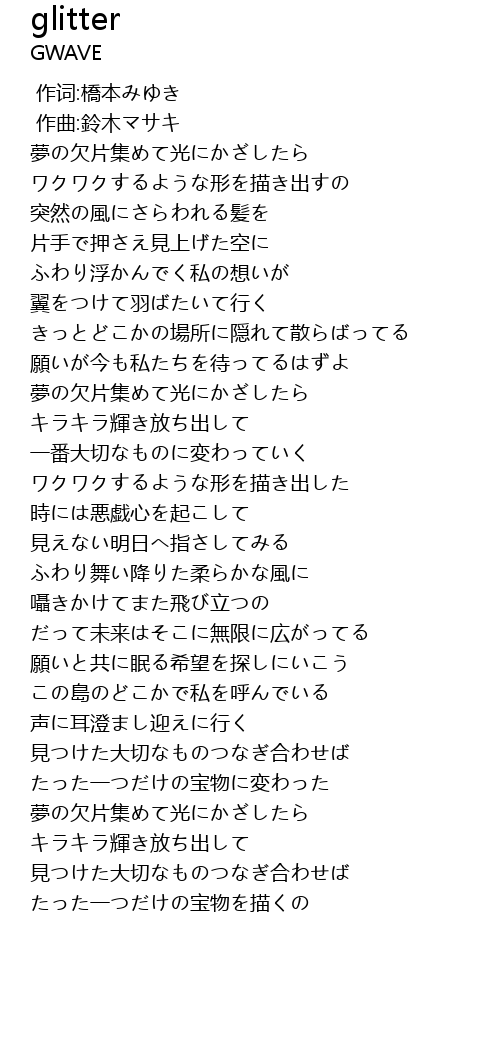 | [00:02.30] | 夢の欠片集めて光にかざしたら |