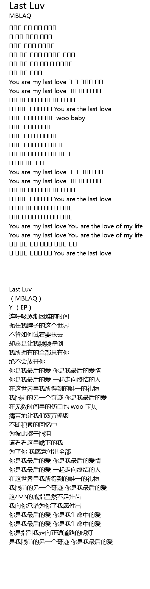 | [02:00.880] | You are my last love 넌 내 마지막 사랑 |