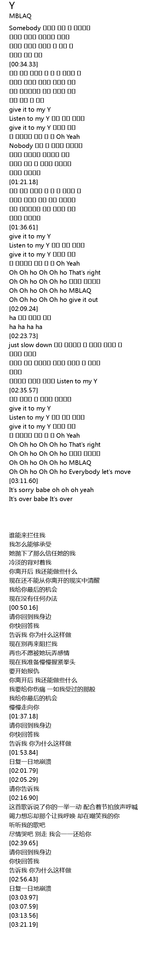 | [03:03.97] | Oh Oh ho Oh Oh ho MBLAQ |