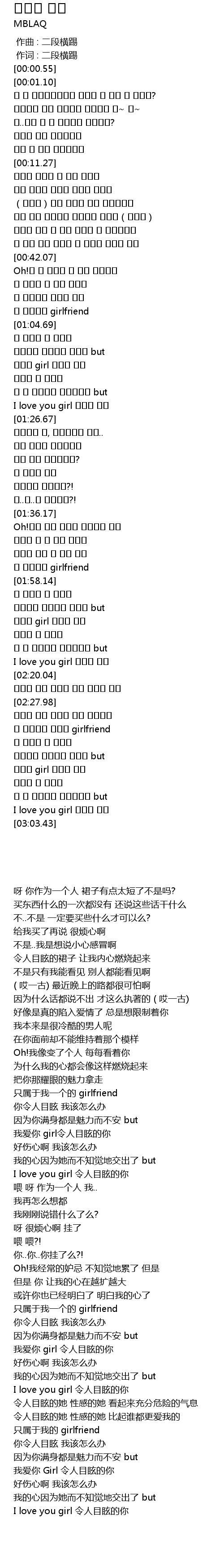 | [02:57.40] | I love you girl 아찔한 너를 |